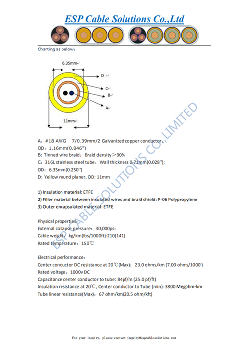 ESP Cable Solutions Co.,Limited supply bulk quantity of Tubing Encapsulated Cables and Control Line Tubing to the market per month, ESPCS Tubing Encapsulated Cables and Control Line Tubing are very popular in the worldwide. The main types of Tubing Encapsulated Cables have 10000/15000/20000 PSI Tubing Encapsulated Cables, Round/Square shape Tubing Encapsulated Cables, 150℃/175℃/200℃/250℃/300℃ Tubing Encapsulated Cables, 1/3/4/5/10/24 Cores Tubing Encapsulated Cables, 28AWG-8AWG conductor size Tubing Encapsulated Cables, Bare/Tinned/Silver Plated/Nickel Plated copper conductor Tubing Encapsulated Cables, ETFE/FEP/PFA/PTFE Insulated Tubing Encapsulated Cables, ETFE/FEP/HDPE/PFA/PP/PVDF Encapsulated TEC Cables, 316L/Duplex2205/Alloy400/Alloy 625/Alloy825 Tubing Encapsulated Cables, 1/8”/1/4”/4mm OD Tubing Encapsulated Cables, Downhole Temperature Measuring Cables, Downhole Tubing Encapsulated Cables, Tubing Encapsulated Downhole Cables, Downhole Fiber Optic Cables, Downhole Conductor Cables, Fiber Optic Downhole Sensor Cables, Flat Pipe Armor Signal Cables, MC Sensor Cables, Encapsulated Communication Cables etc.