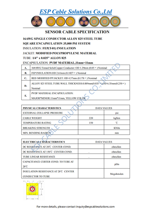 ESP Cable Solutions Co.,Limited supply bulk quantity of Tubing Encapsulated Cables and Control Line Tubing to the market per month, ESPCS Tubing Encapsulated Cables and Control Line Tubing are very popular in the worldwide. The main types of Tubing Encapsulated Cables have 10000/15000/20000 PSI Tubing Encapsulated Cables, Round/Square shape Tubing Encapsulated Cables, 150℃/175℃/200℃/250℃/300℃ Tubing Encapsulated Cables, 1/3/4/5/10/24 Cores Tubing Encapsulated Cables, 28AWG-8AWG conductor size Tubing Encapsulated Cables, Bare/Tinned/Silver Plated/Nickel Plated copper conductor Tubing Encapsulated Cables, ETFE/FEP/PFA/PTFE Insulated Tubing Encapsulated Cables, ETFE/FEP/HDPE/PFA/PP/PVDF Encapsulated TEC Cables, 316L/Duplex2205/Alloy400/Alloy 625/Alloy825 Tubing Encapsulated Cables, 1/8”/1/4”/4mm OD Tubing Encapsulated Cables, Downhole Temperature Measuring Cables, Downhole Tubing Encapsulated Cables, Tubing Encapsulated Downhole Cables, Downhole Fiber Optic Cables, Downhole Conductor Cables, Fiber Optic Downhole Sensor Cables, Flat Pipe Armor Signal Cables, MC Sensor Cables, Encapsulated Communication Cables etc.